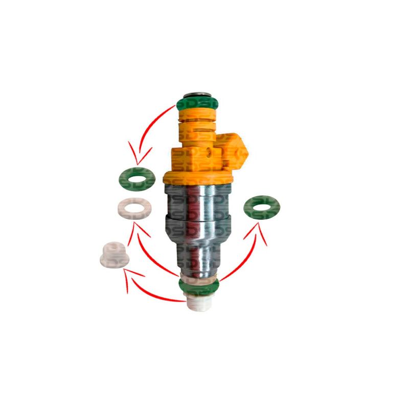 Os componentes de reparo, formado por anel o’ring, anel de fixação, ponteira e filtro são montados como parte integrante do bico injetor.