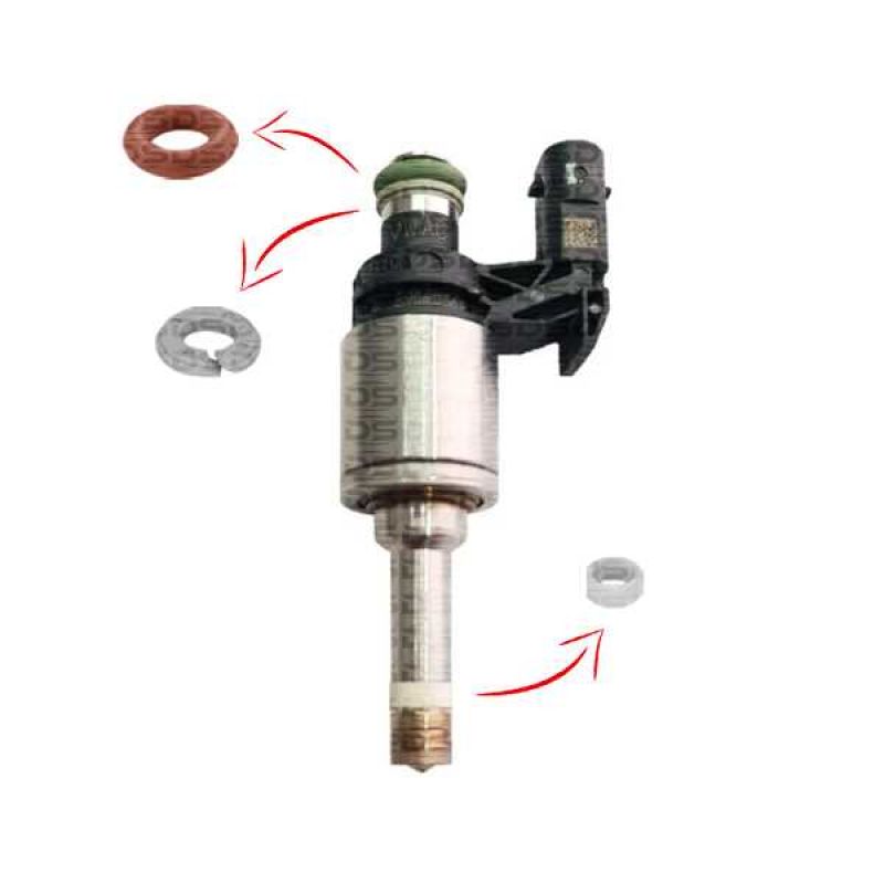 Os componentes de reparo, formado por anel o’ring, anel de fixação, ponteira e filtro são montados como parte integrante do bico injetor.
